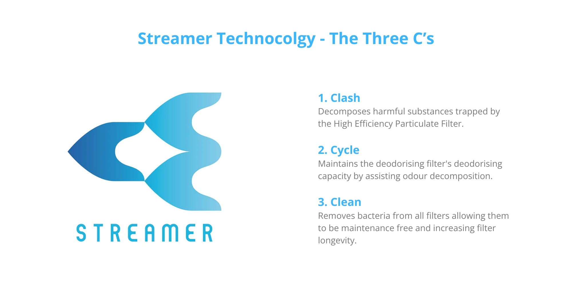 This powerful oxidative decomposition process continuously removes odours, bacteria and indoor air pollutants, such as formaldehyde, for superior air purification.